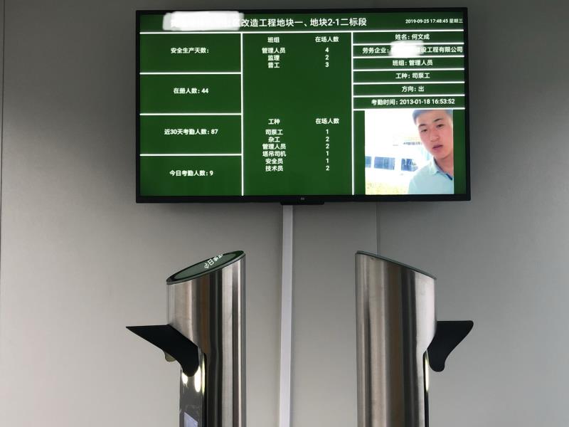 说明:LED屏实时显示施工区域人员数量,并实时显示出入人员刷卡记录。同时可显示企业公告及视频宣传片。