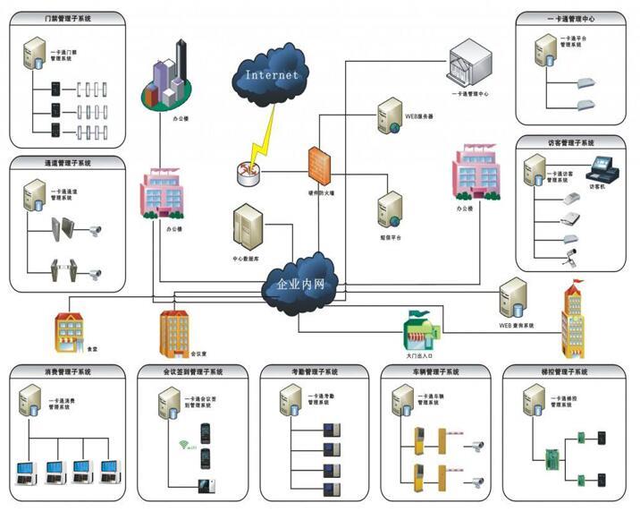 一卡通即一卡通用,而企业一卡通,则主要针对员工数较多的企业的“一卡通用”,主要涉及到的主要模块为:门禁、售饭机、节水控电、考勤机、通道闸、访客预约、梯控、停车刷卡等子系统。